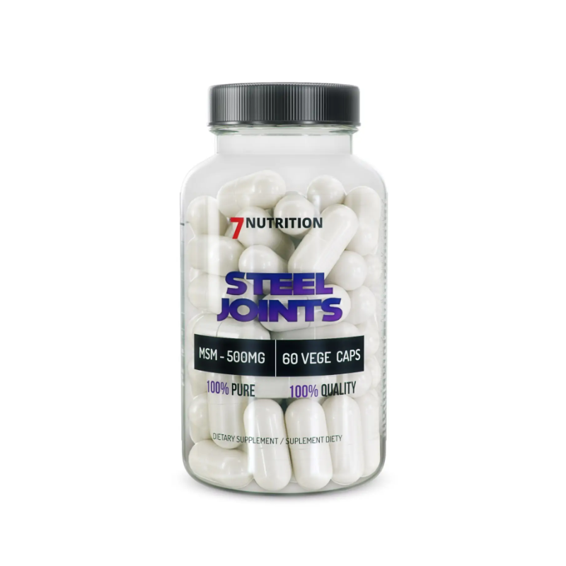 7 Nutrition Steel Joints – tai aukštos kokybės papildas, sukurtas specialiai sąnarių sveikatai palaikyti. Šis papildas turi išskirtinį ingredientų derinį, kuris padeda stiprinti sąnarius, raiščius, sausgysles ir kremzles. Steel Joints sudėtyje yra svarbių medžiagų, tokių kaip gliukozaminas, chondroitinas ir MSM, kurie palaiko sąnarių judrumą, mažina skausmą ir uždegimą, bei padeda atstatyti pažeistus sąnarių audinius. Idealiai tinka aktyviems žmonėms ir sportininkams, taip pat visiems, kurie nori išlaikyti sąnarių sveikatą ilgalaikėje perspektyvoje.
